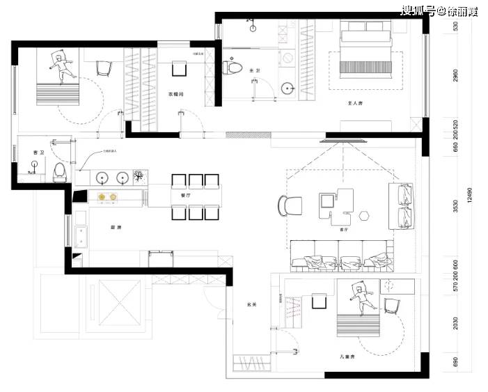 本案男业从是一名置业参谋,♡儿童房设想师选择了敞亮轻快的烟灰粉和牛油果绿,